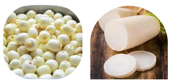 White foods such as garlic, white radish, onions, etc. are rich in allicin, vitamin C, and selenium. Helps enhance immunity, prevent cancer, lower blood pressure, and promote heart health.